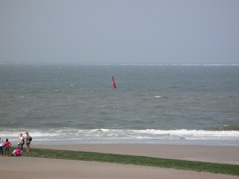 De wind is erg ongunstig, pal tegen en een dikke vijf met volgens de voorspellingen tegen de avond vlagen 6-7. Dat is geen weer om naar de Elbemond te varen. Na een bewolkte ochtend komt de zon tevoorschijn en wordt het heerlijk weer. We lopen 's middags nogmaals naar de stad waar we een nieuwe camera gaan kopen. De lader van onze camera ligt nog thuis en een vervanger is niet te krijgen (speciaal formaat van Nikon). We zijn wat vroeg, de winkel is pas om 3 uur weer open, dus we vermaken ons met enorme ijscoupes bij een italiaan om de hoek. Met de nieuwe camera op zak lopen we vervolgens naar de Boulevard, waar we een flinke branding zien en daarna langs de dijk weer terug richting haven. 's Avonds eten we in het prima restaurant op de haven en kijken daarna naar de halve finale van Nederland en Argentinië. Met een lichte kater keren we terug aan boord.