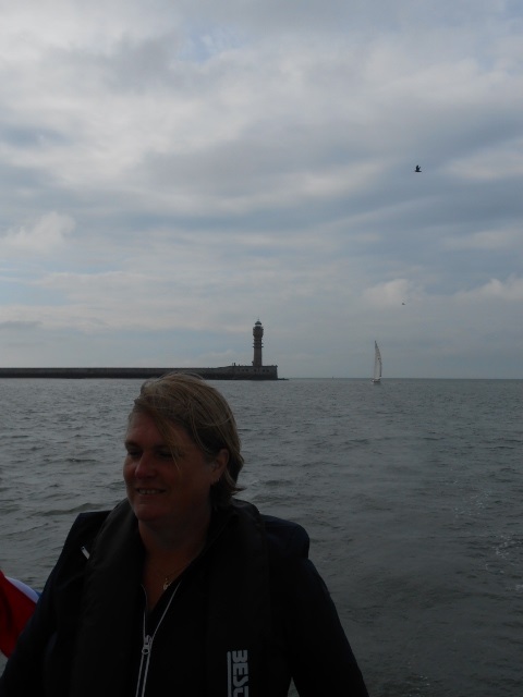 De wind staat nog altijd uit de verkeerde hoek en ook het tij is niet echt gunstig. We gaan daarom een wat korter stukje varen naar Duinkerke. Het tij gaat meelopen vanaf half vier in de middag, maar om niet te laat aan te komen, willen we rond 2 uur buiten zijn. Er staat meer wind dan verwacht en we kunnen heerlijk zeilen. Eerst gaan we weer een eindje de zee op om de ondieptes te vermijden en daarna overstag om langs de kust en de banken naar Frankrijk te zeilen. Boven land hangen enorm donkere wolken, maar op zee zitten we in de zon. Hoog aan de wind lopen we de oostelijke vaargeul van Duinkerke binnen. Het is niet bezeild, maar al kruisend met de stroom mee schiet het nog aardig op. Tegen vijfen zeilen we tussen de pieren van Duinkerke naar binnen. We zijn in Frankrijk.