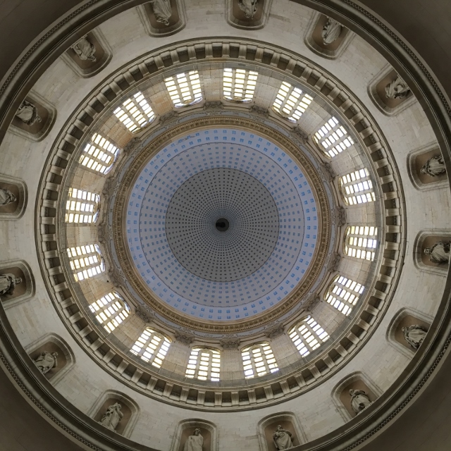 Onder de Basilique de Notre Dame zijn de cryptes opengesteld voor het publiek en dat willen we gaan bekijken. Het is een indrukwekkend gangenstelsel met een keur aan objecten uit allerlei perioden die tentoongesteld staan in de ruimtes en langs de muren. Het doet een beetje rommelig aan, maar is toch zeker de moeite van een bezoek waard. De Basiliek zelf is in de 19e eeuw herbouwd bovenop de oude Romaanse kerk en heeft een indrukwekkende koepel.
