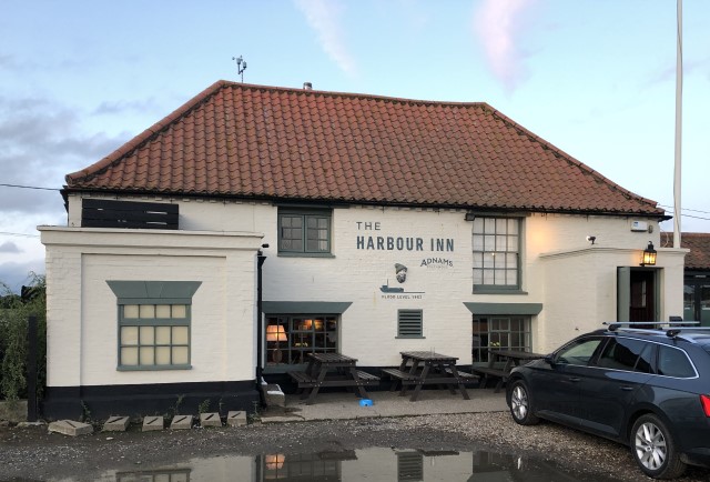 Na het eten gaan we nog even naar de kroeg aan de overkant, de Harbour Inn, waar ze het bier schenken uit de lokale brouwerij Adnams. Het smaakt uitstekend!
